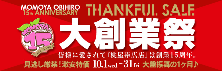 感謝感激の15周年『大創業祭』ポッキリ割引特価+もれなく金券サービス♪