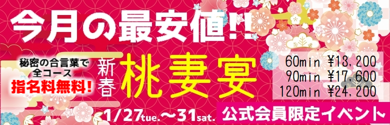 【会員限定イベント】今月の最安値『新春♥桃妻宴』のお知らせ